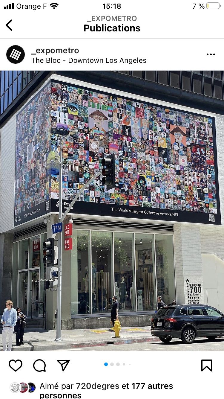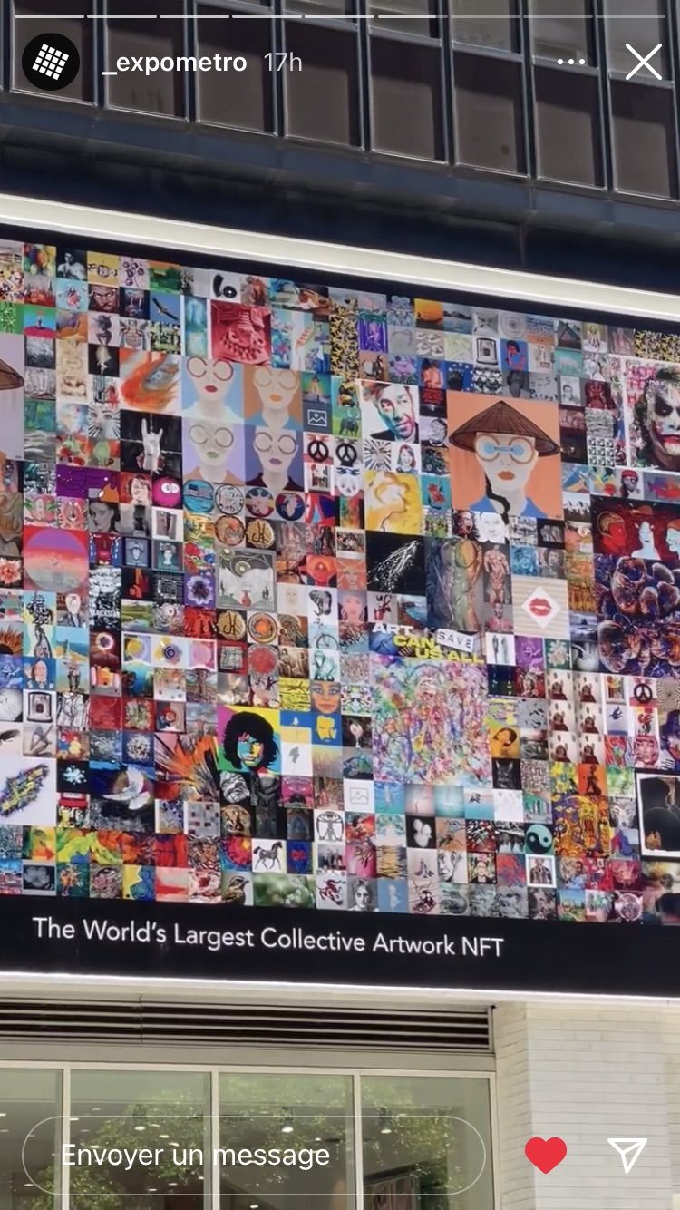 Du 18 au 25 juin 2022 le plus grand NFT au monde mesurant 60 mètres par 25 regroupant 460 artistes et 38 pays a été exposé à l’entrée du building The Bloc.