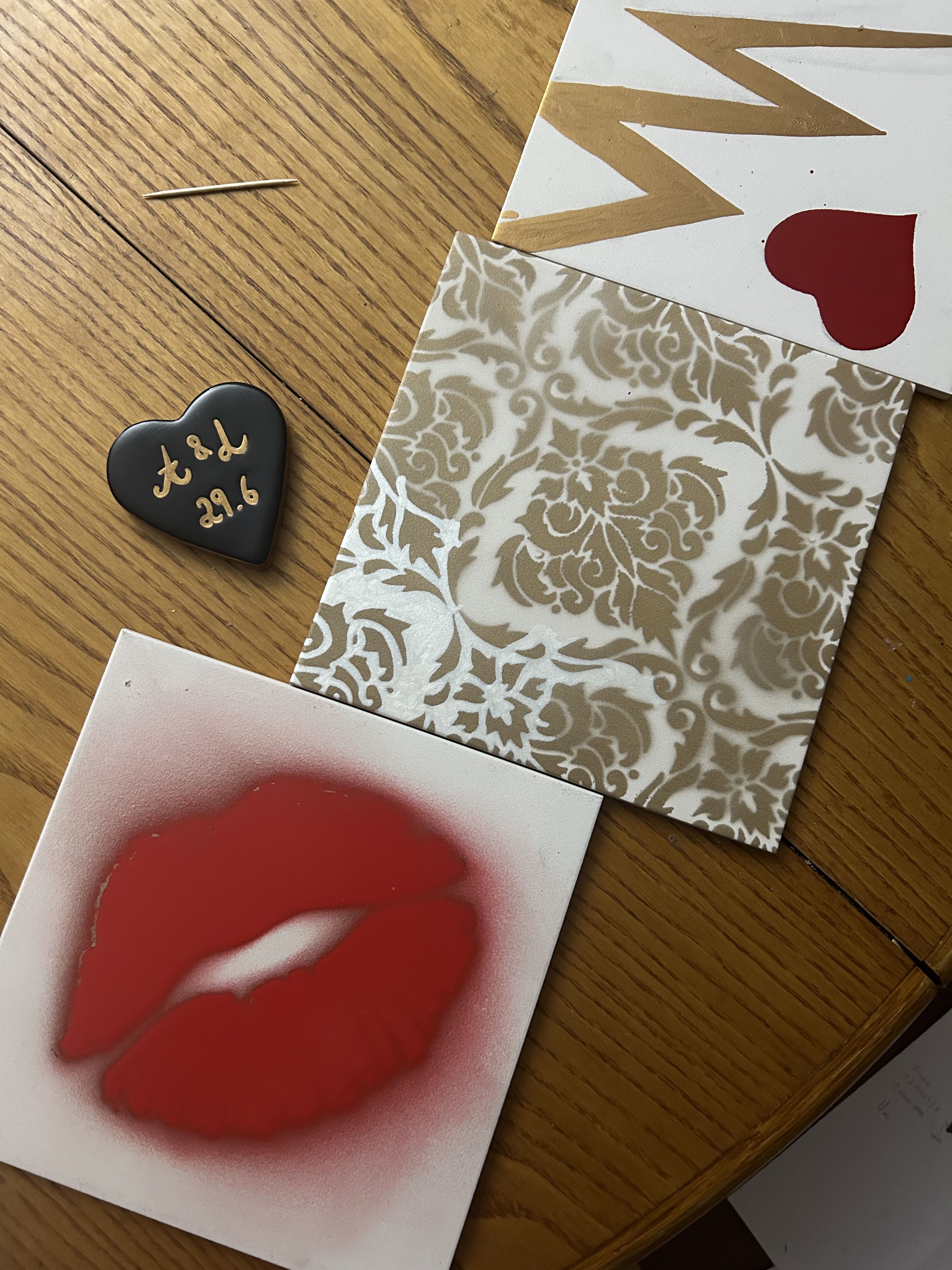 Imagine artworks ranging from 20 cm to 1.5 m on various wooden supports and a tile created to your desire